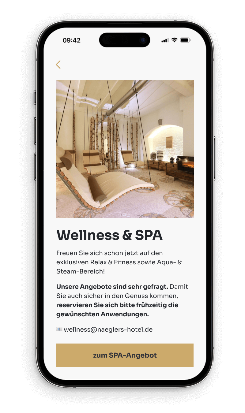 „Im digitalen Zeitalter ist der Anreise-Assistent ein optimales Werkzeug für den Informationsfluss an unsere Gäste. Zeit und Ressourcen sind knapp – das kennen wir alle. Wir haben uns für den Anreise-Assistent entschieden, um unser Team von vielen wiederkehrenden Rückfragen und Anrufen zu entlasten, um unsere Zeit mehr unseren Gästen vor Ort zu widmen.”